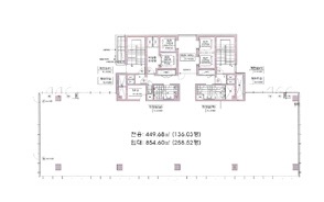 기준층 면적임대 258평 / 전용 136평